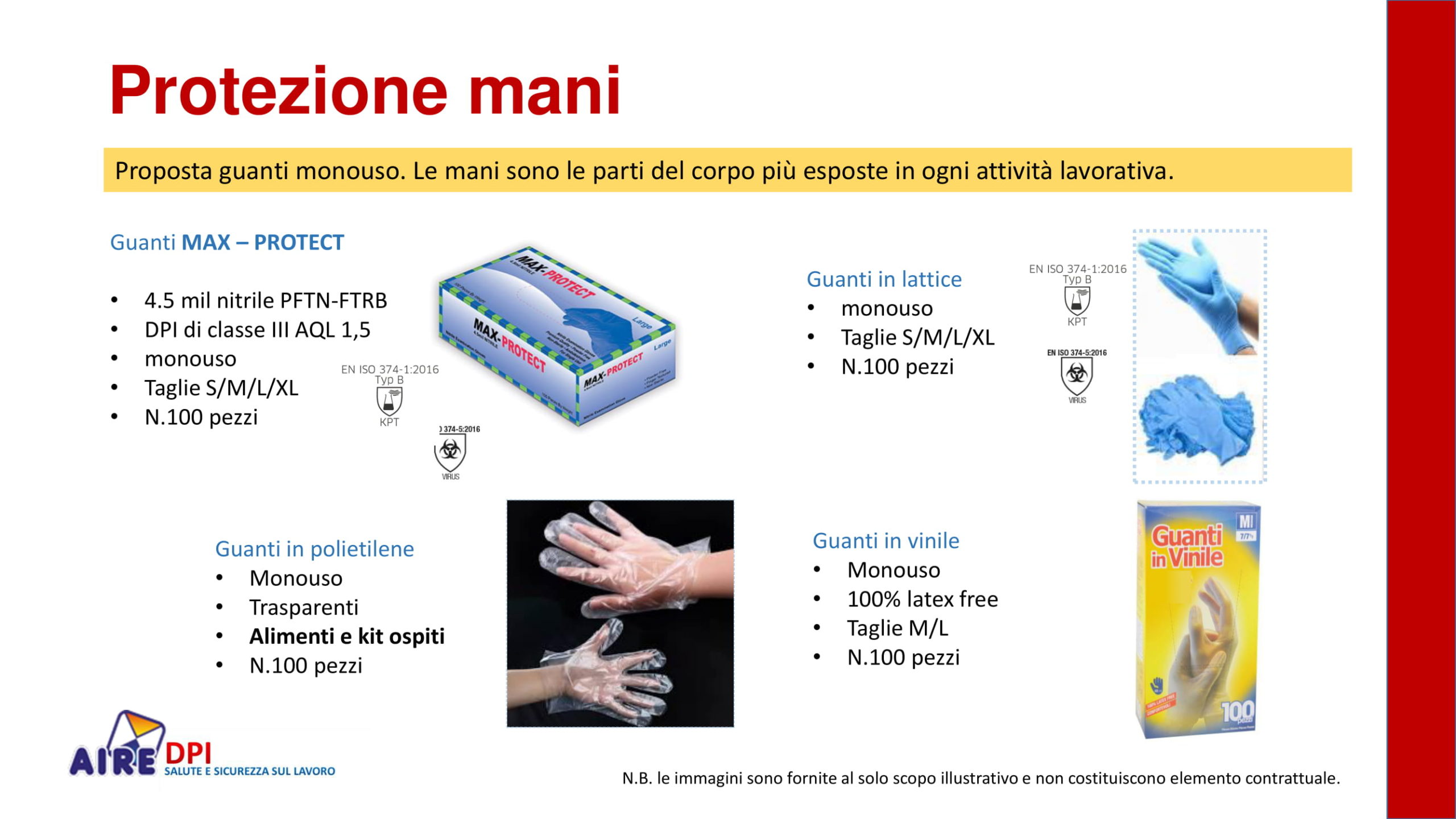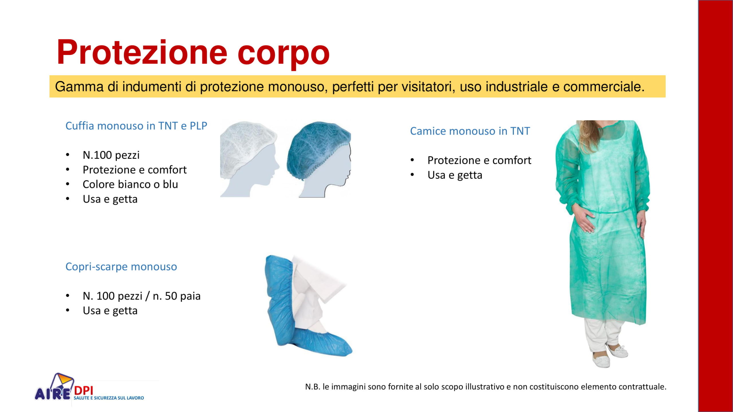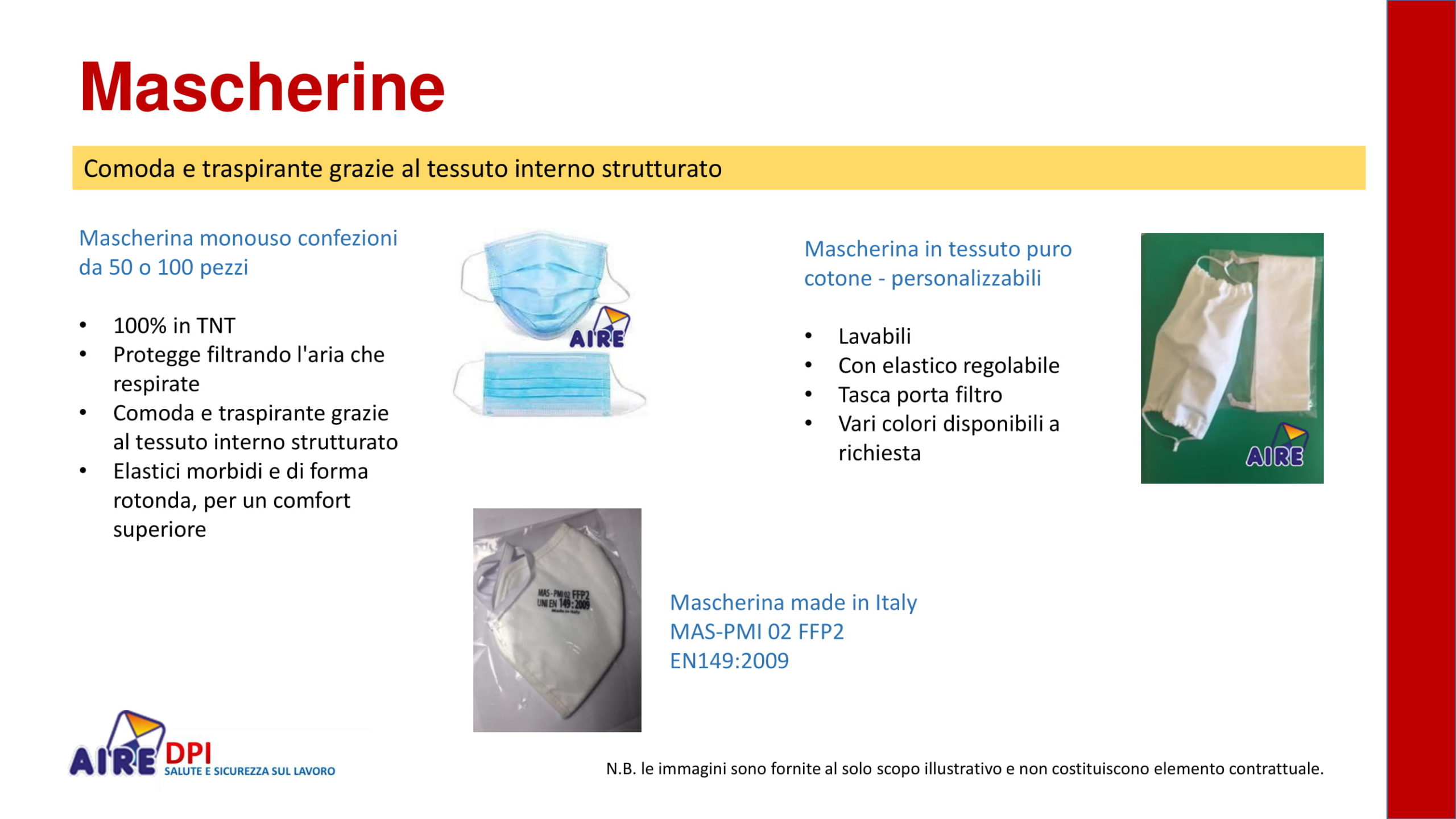 Aire sas mette a disposizione dei propri clienti tutti i prodotti necessari per la protezione individuale.